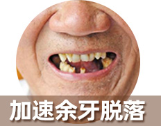 咀嚼能力有限。造成牙龈萎缩,邻牙相缝松动脱落