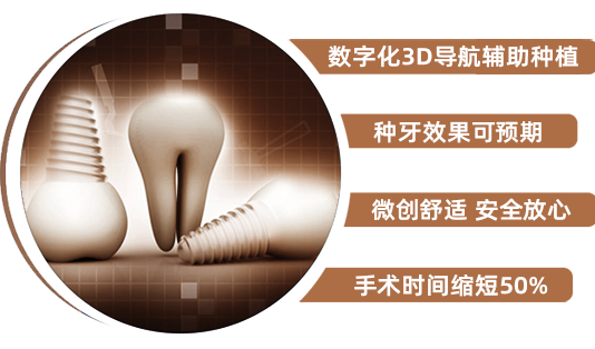 - 口内模拟种植,避开神经血管,设计种植方案;通过CAD/CAM激光扫描和CBCT检测等, 在计算机上重建患者口腔三维立体模型,凭借由打印技术制作的种植导板对手术全程的精准把控,减少手术时间及手术创伤,实现对缺牙的修复。
